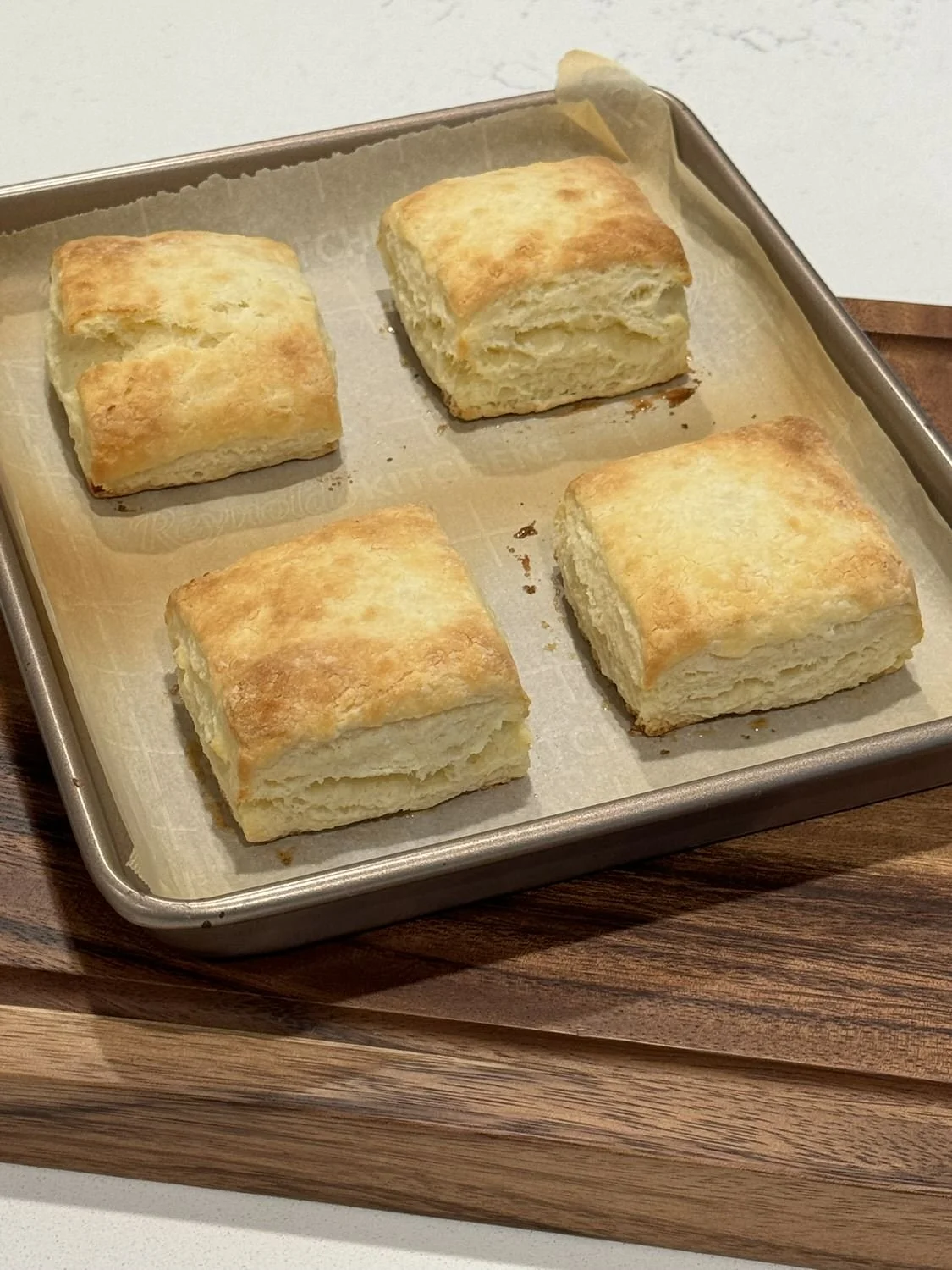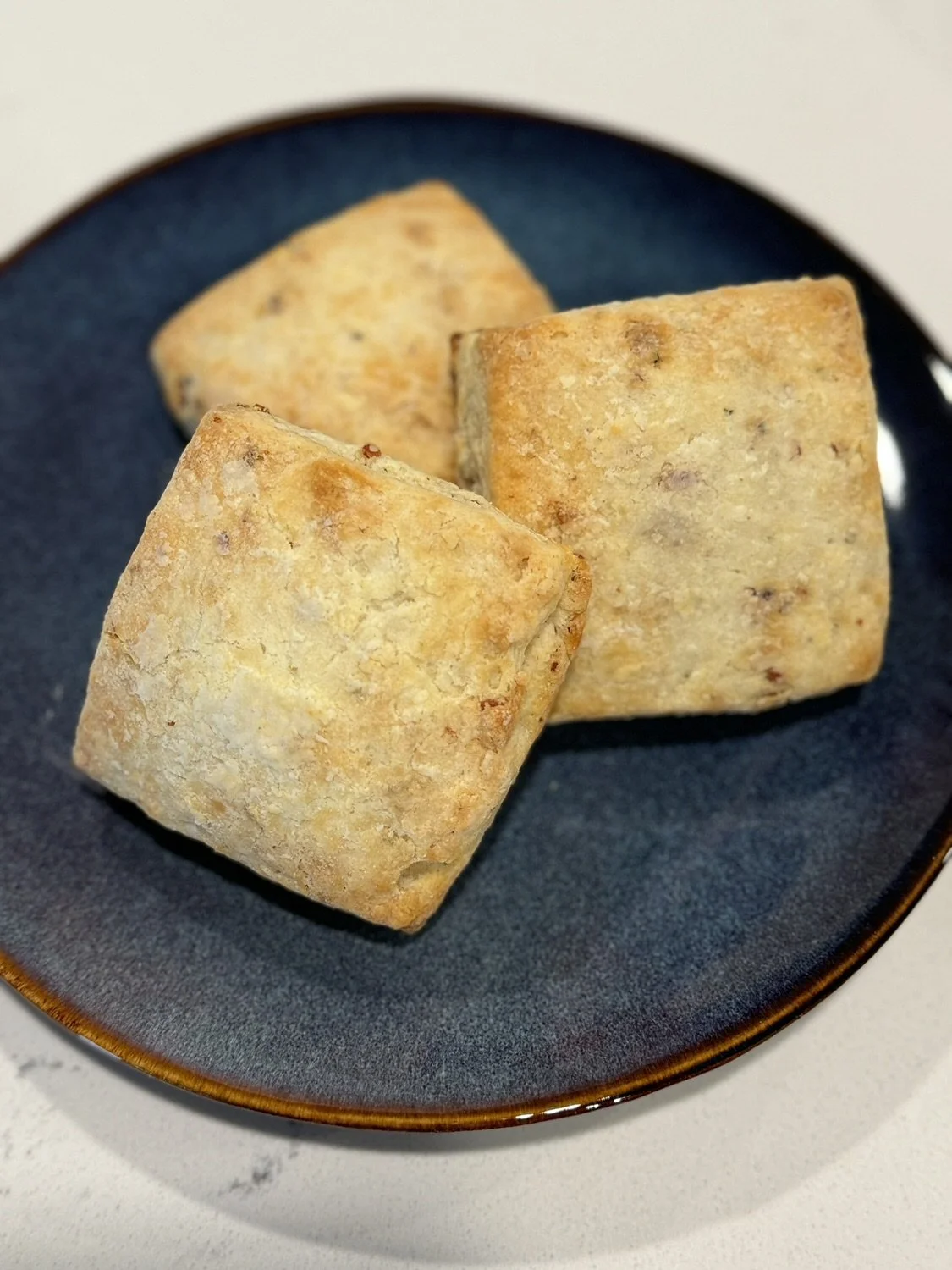 All our flavors – Signature Buttermilk, Bacon, Cheddar (and coming soon, Blueberry) – are square cut for crisp corners from dough that is never re-rolled.